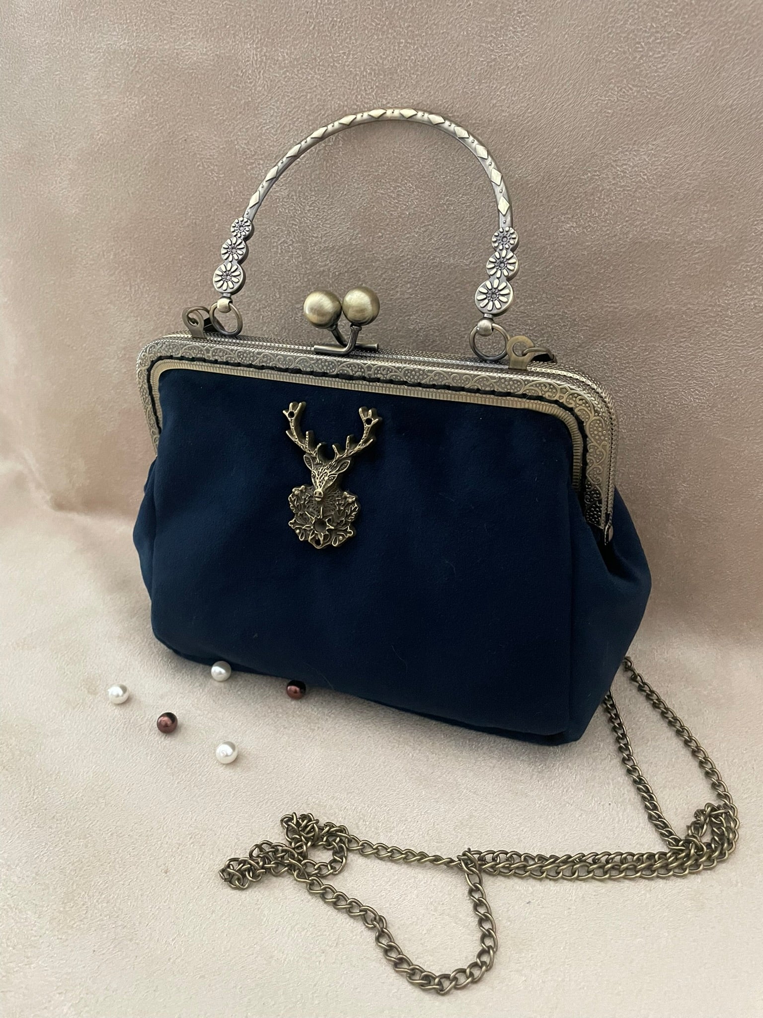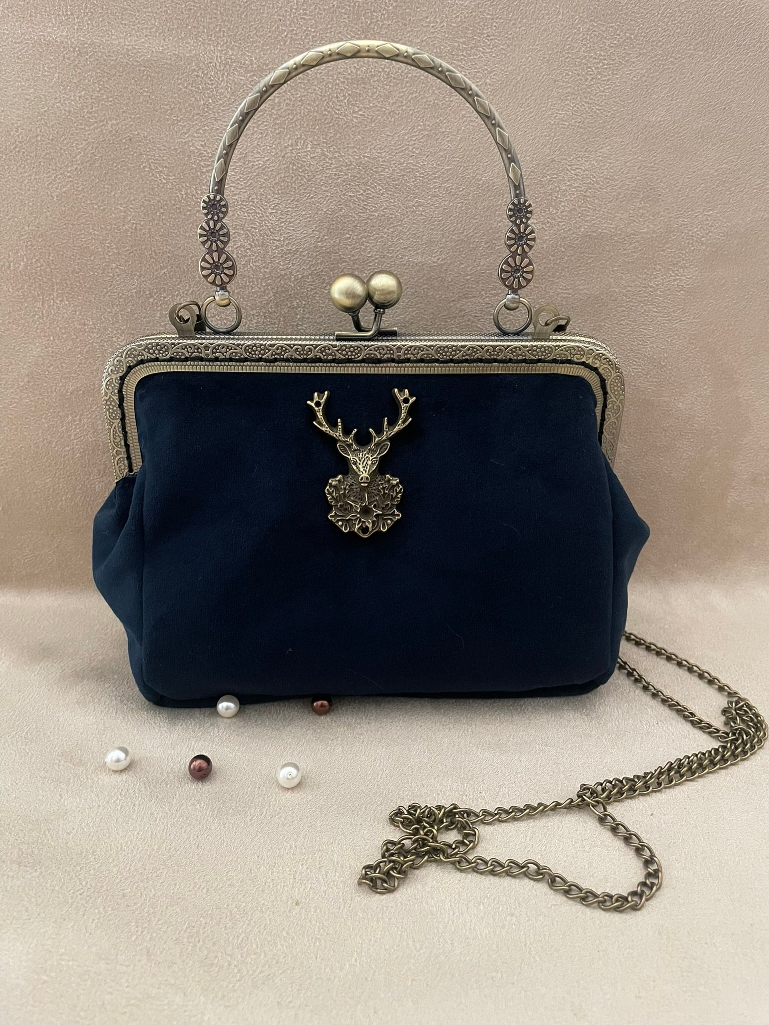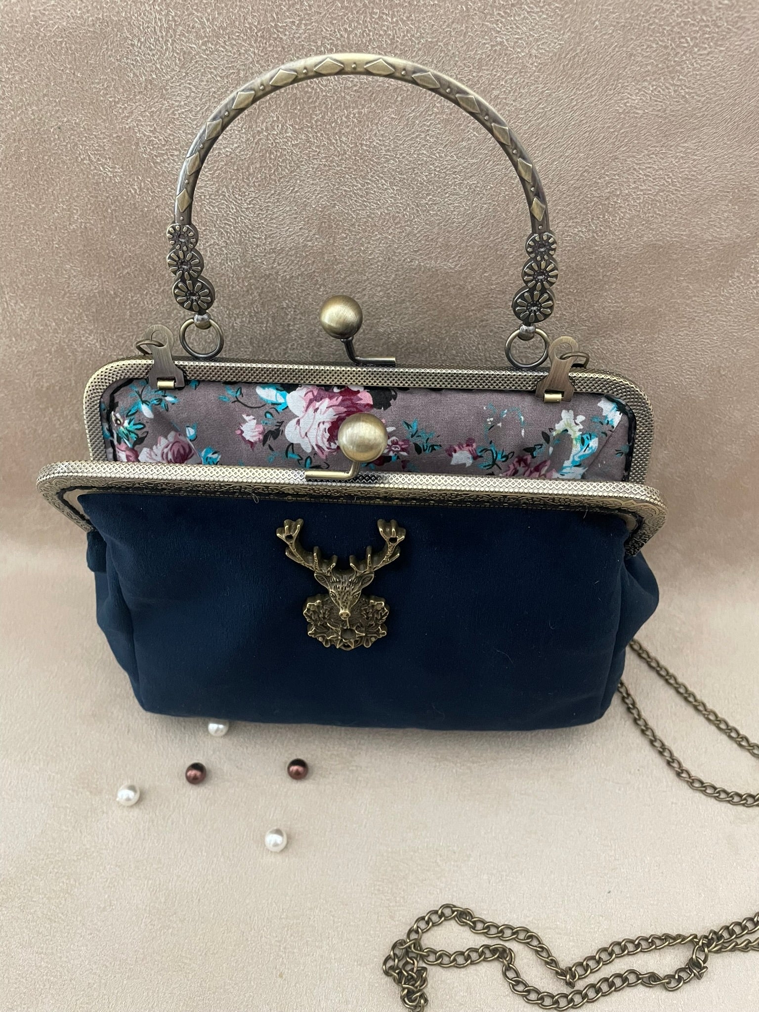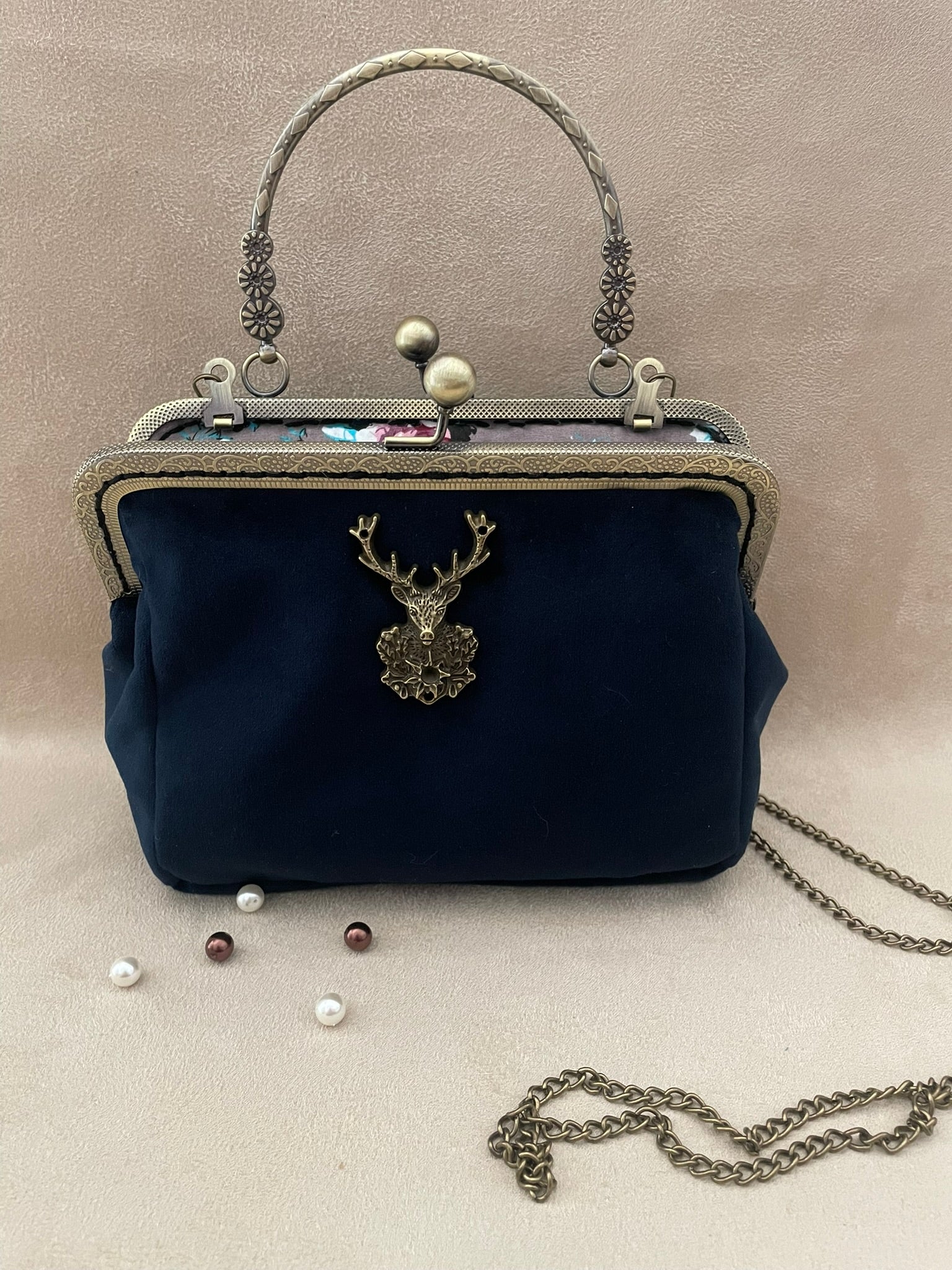 Le centre du clutch est sublimé par un délicat accessoire en forme de cerf, un symbole de grâce et de force, qui ajoute une touche unique et artistique à votre tenue. La doublure assortie, ornée de motifs floraux discrets, révèle un souci du détail qui fera toute la différence. Pratique et élégant, ce clutch est le compagnon idéal pour vos soirées, vos événements spéciaux ou simplement pour ajouter une note de charme à votre quotidien.