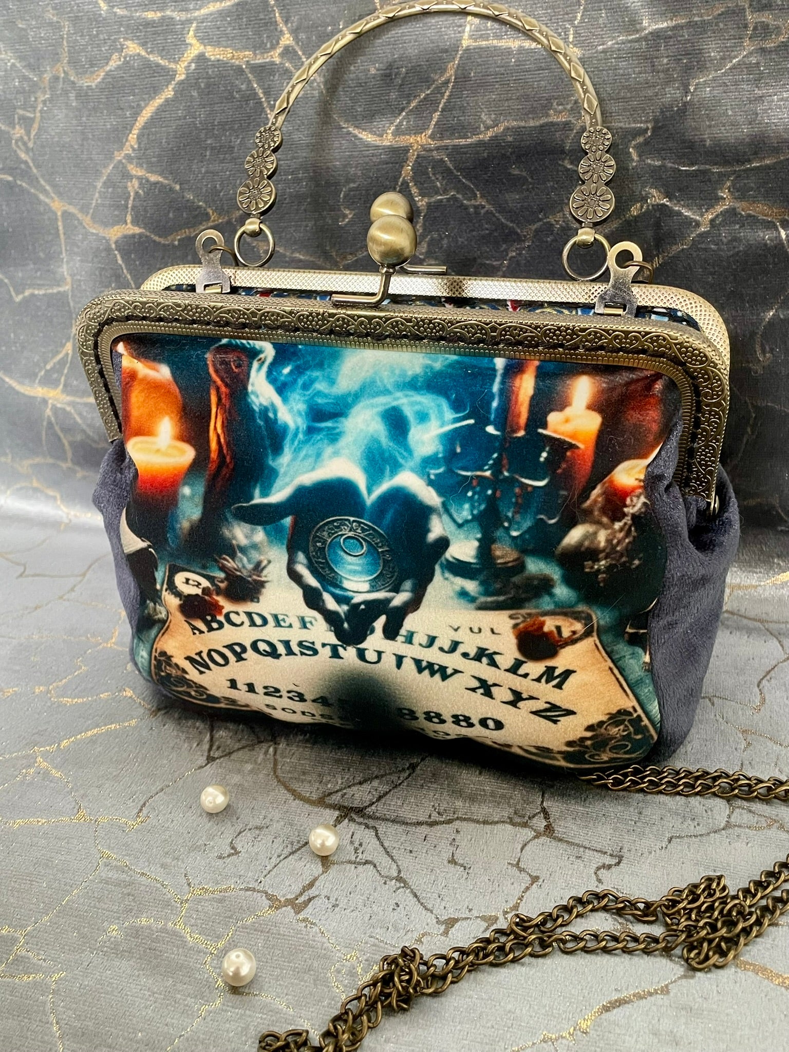 🔮 Clutch "Esprit Mystique" — Velours Bleu et Design Ouija Fantaisie