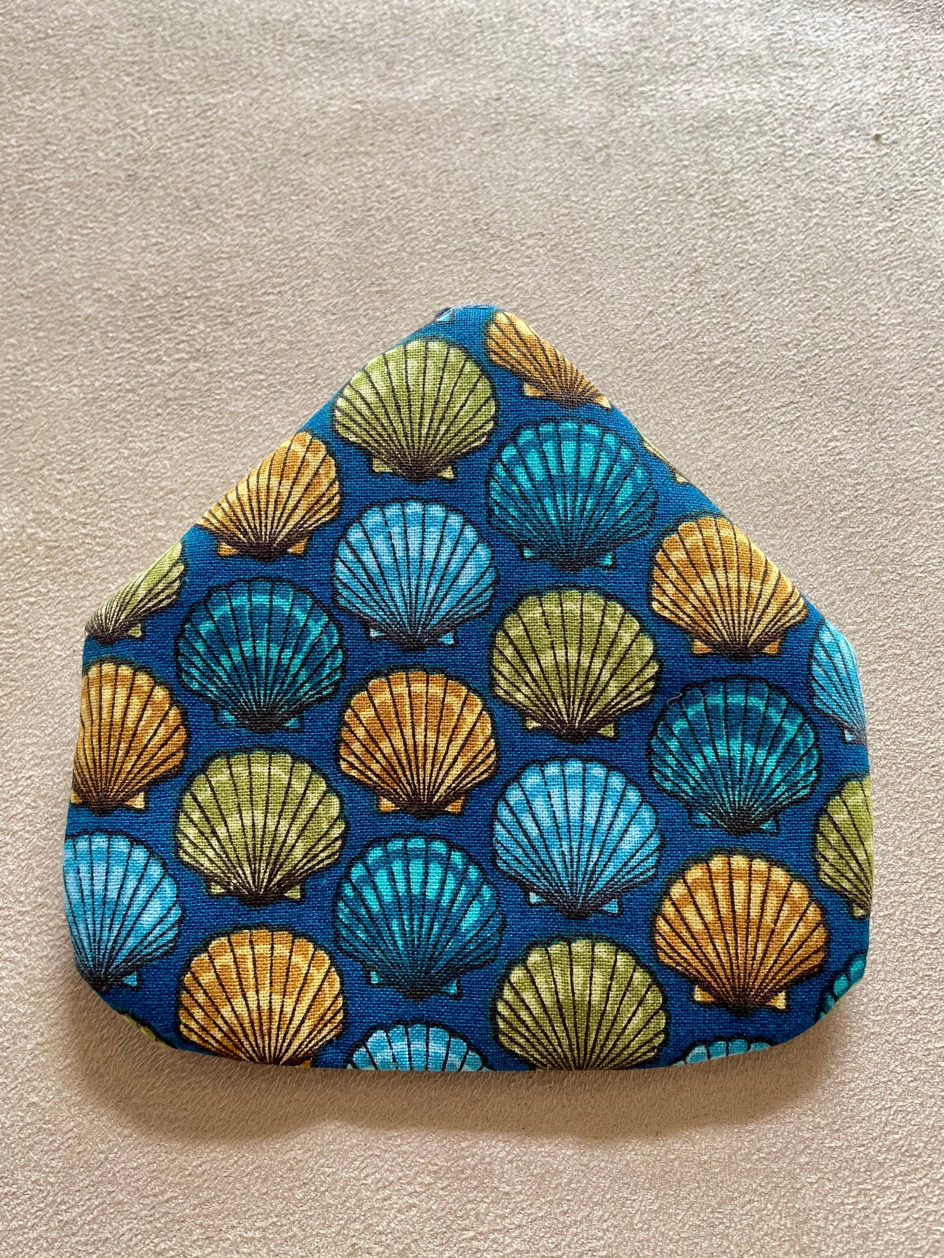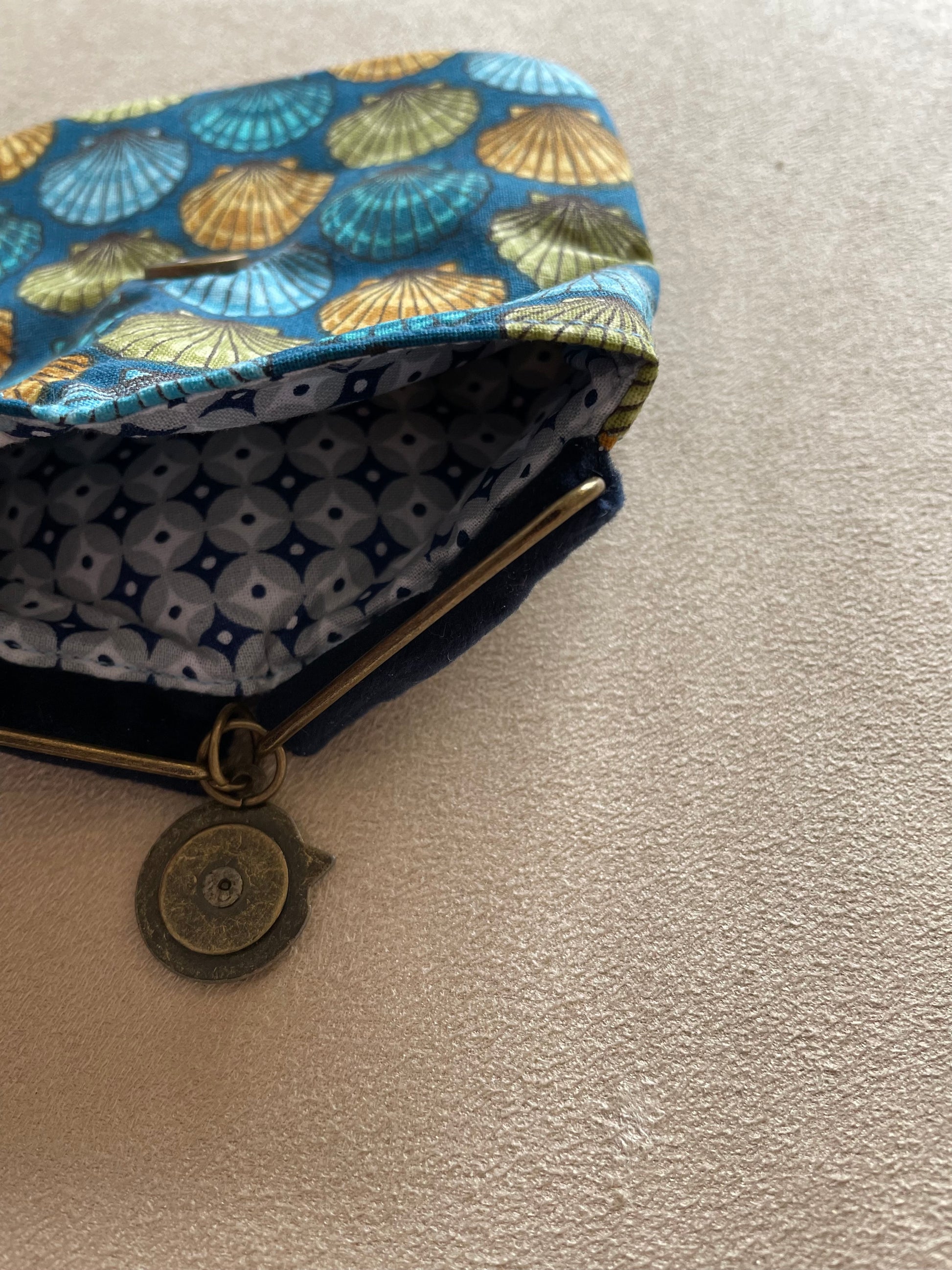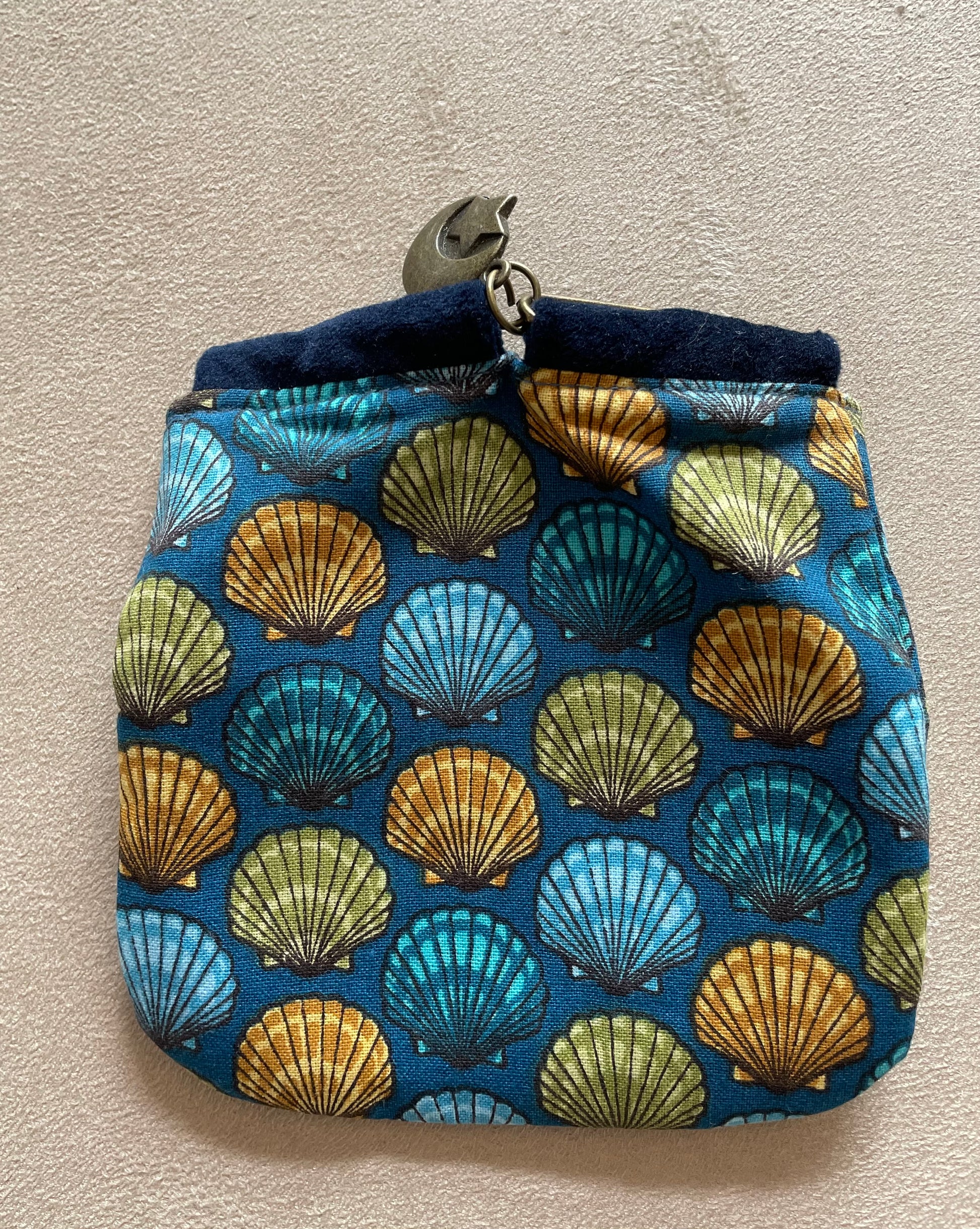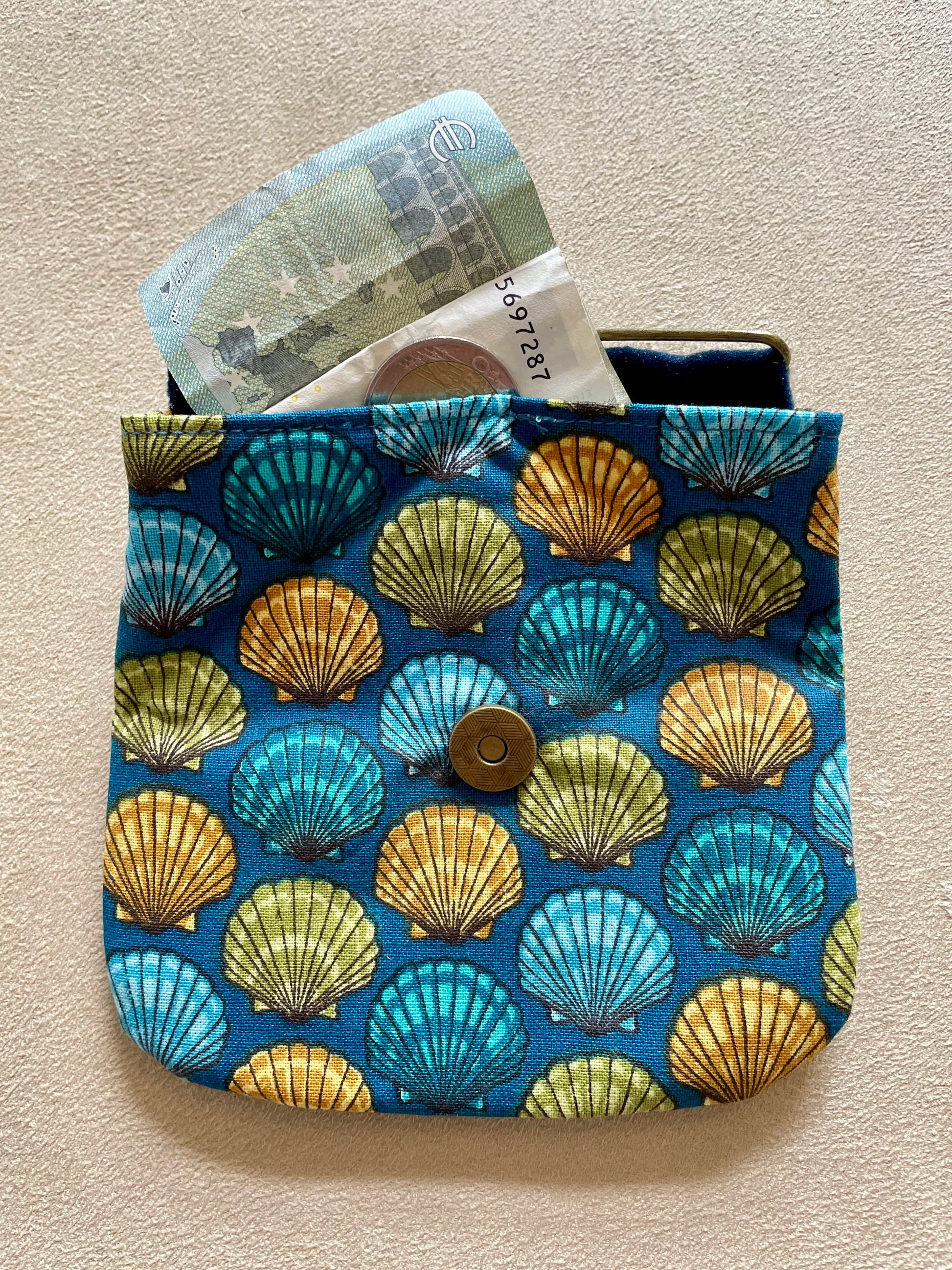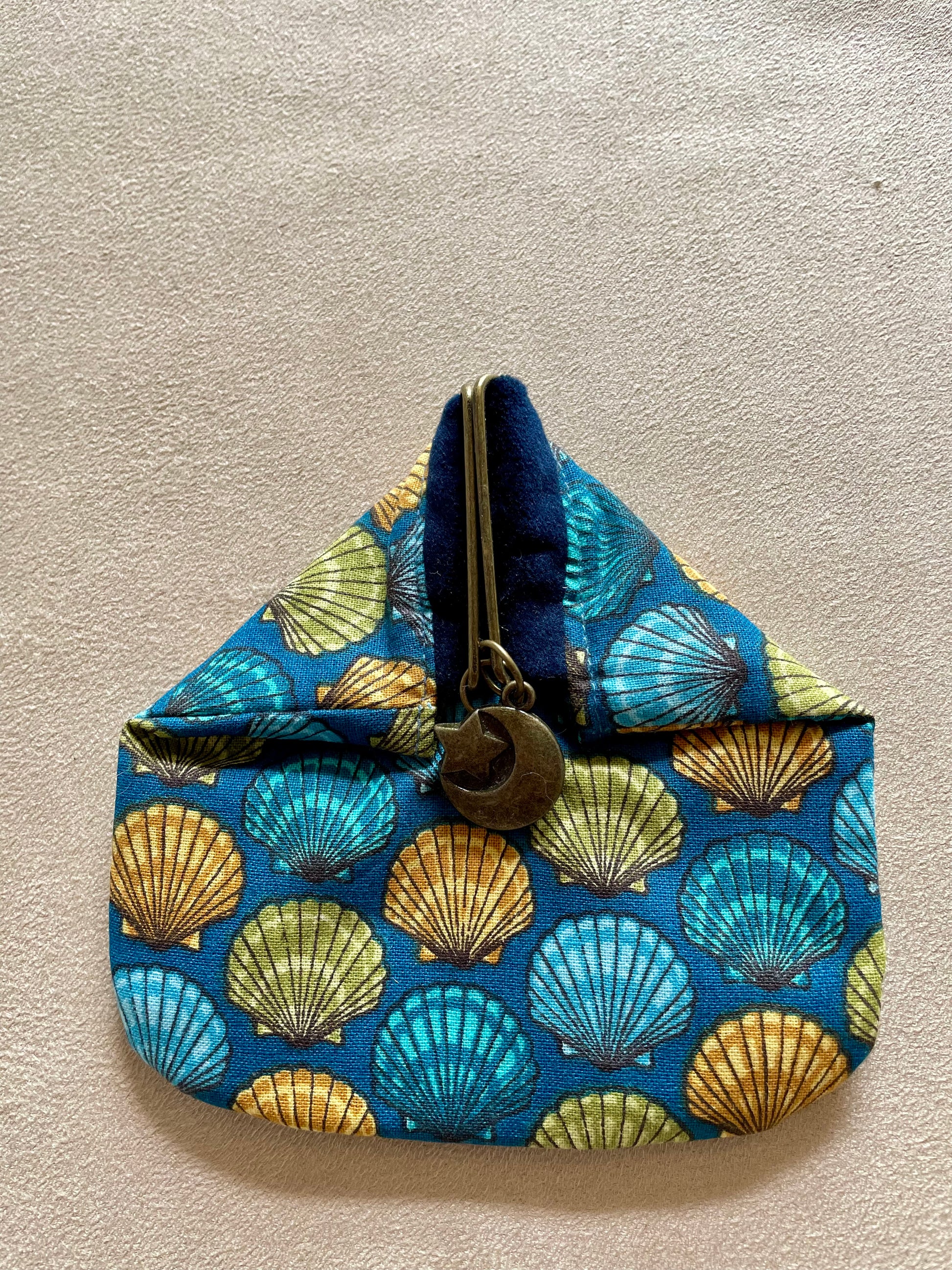 Porte-monnaie en coton - Fond bleu et coquillages artistiques