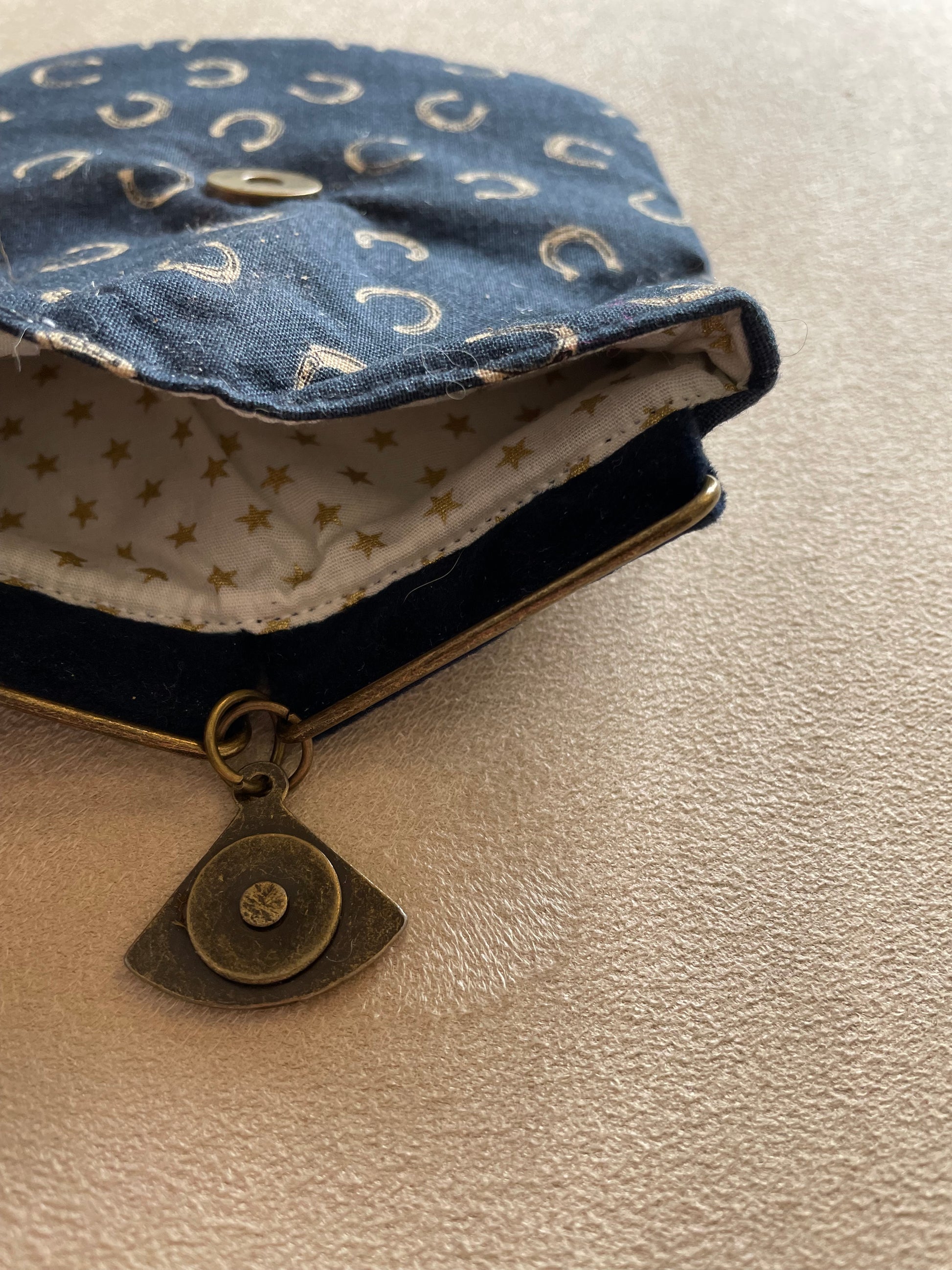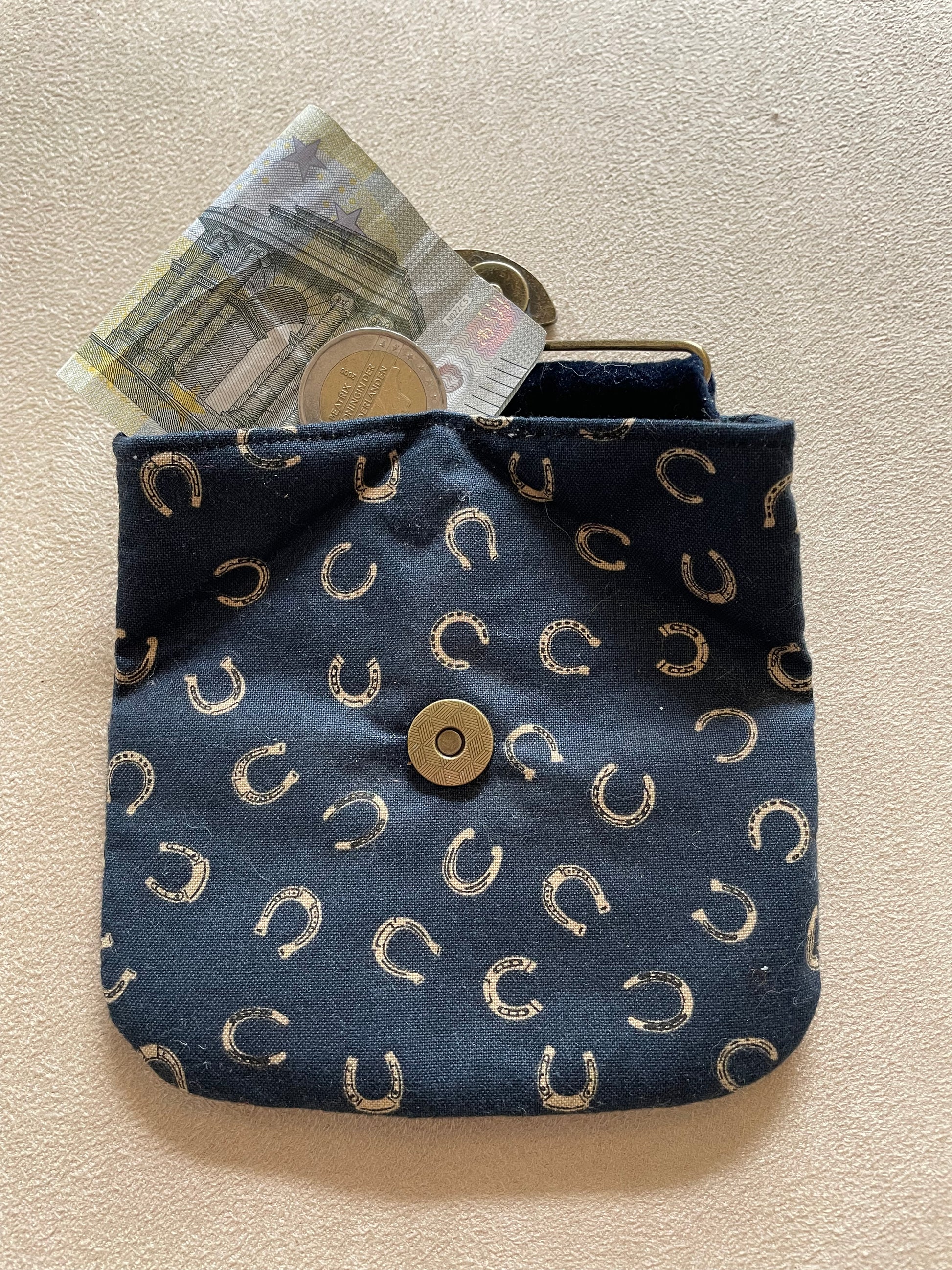 Porte-monnaie en coton - Fond bleu et fers à cheval élégants