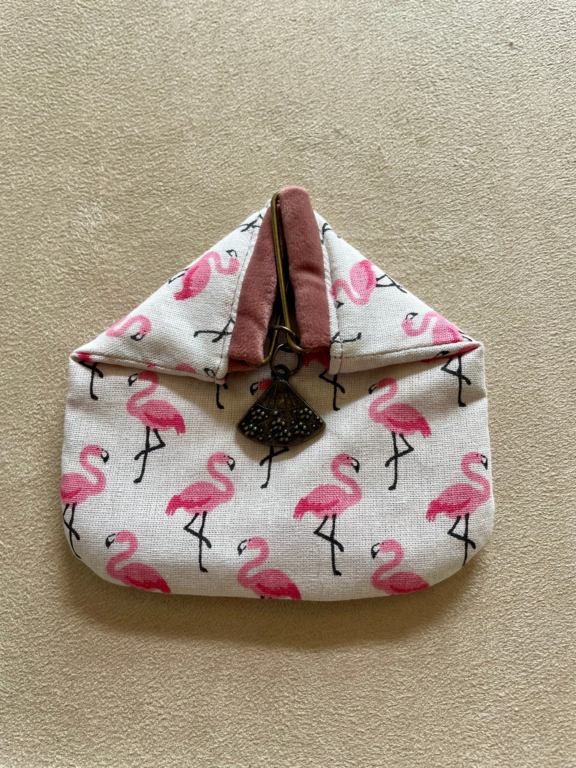 Apportez une touche de grâce et de charme tropical à votre quotidien avec ce porte-monnaie en coton, décoré d'un motif captivant de flamants roses. Cet accessoire unique associe modernité et fraîcheur pour un style irrésistible.