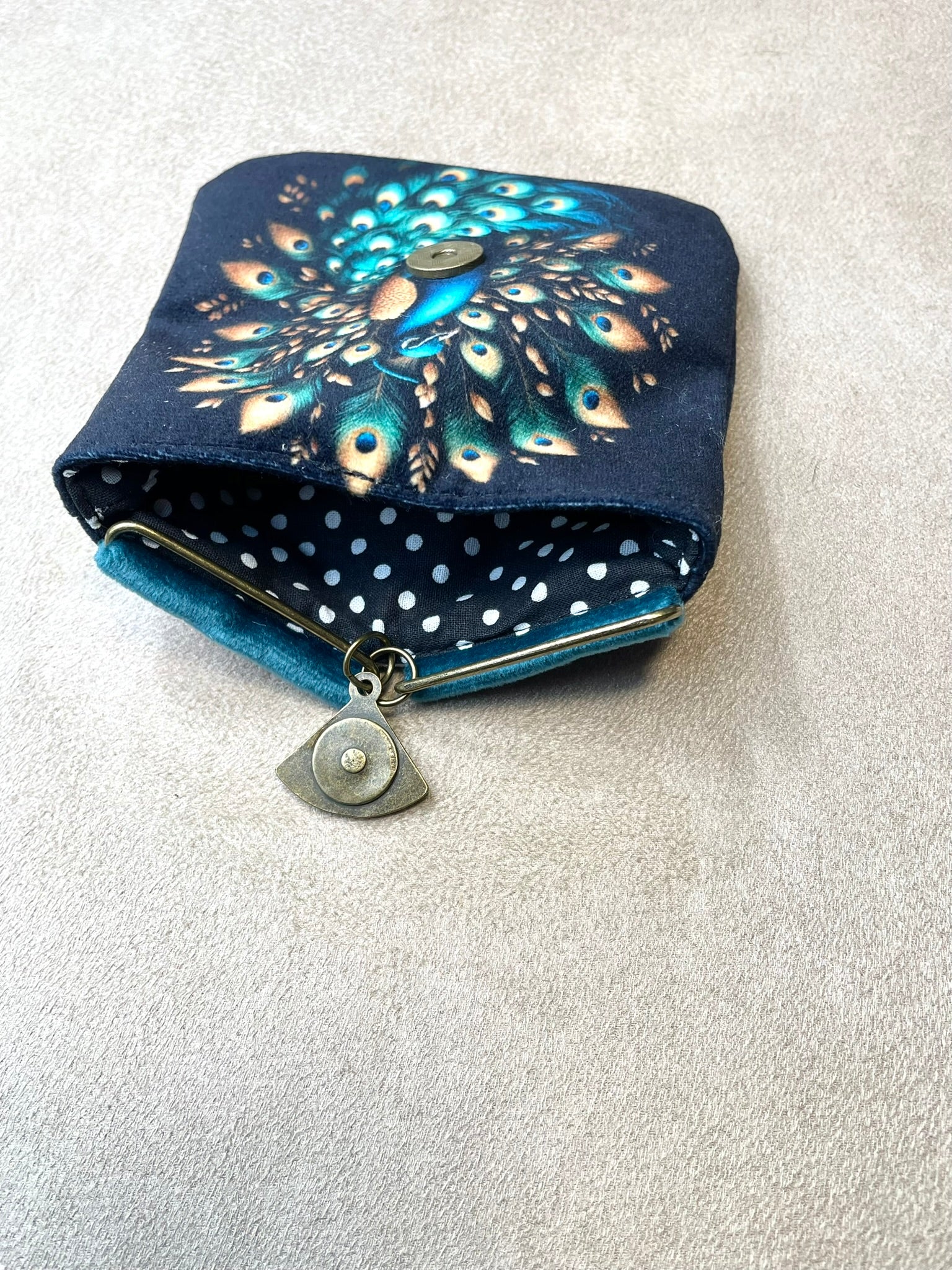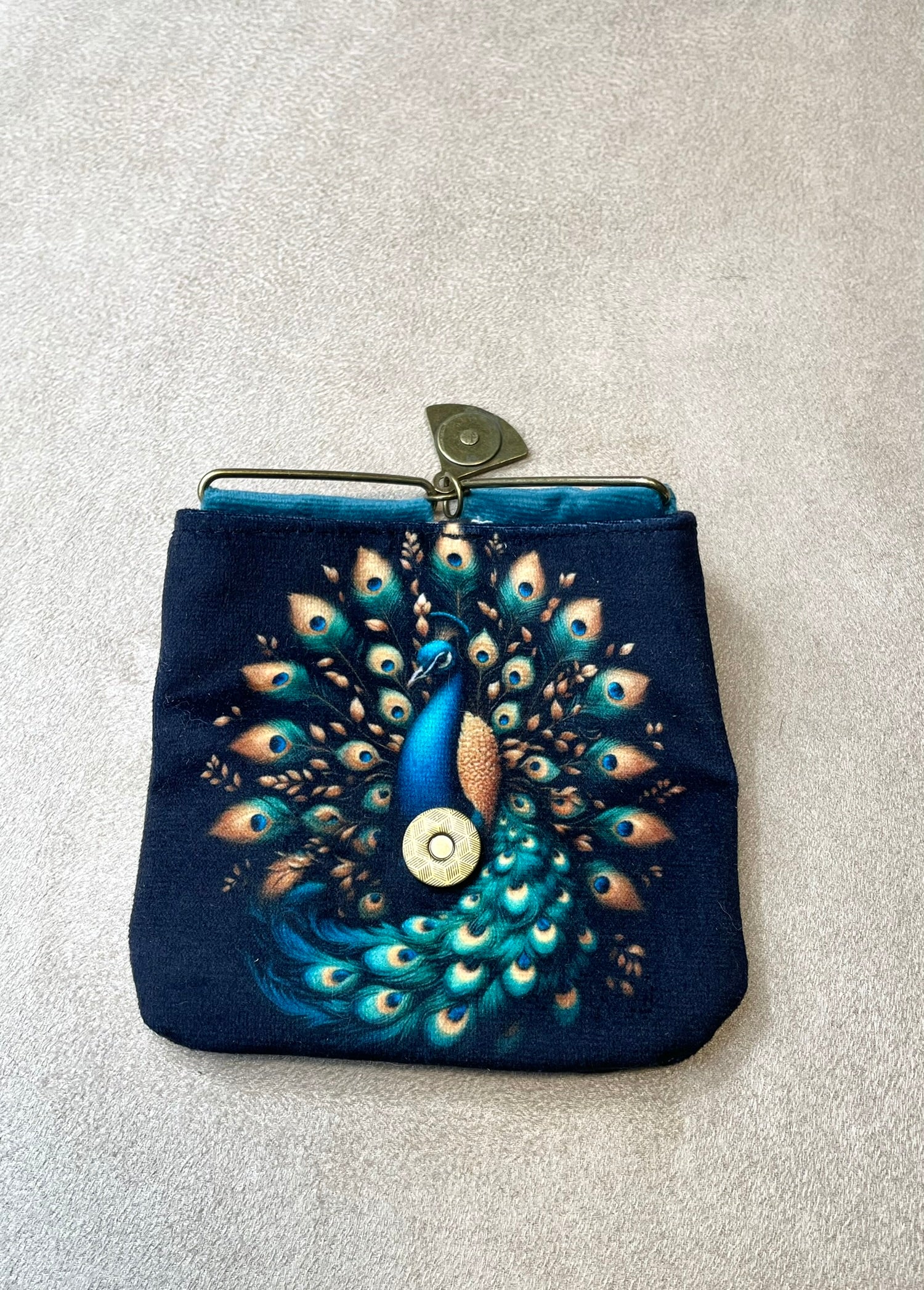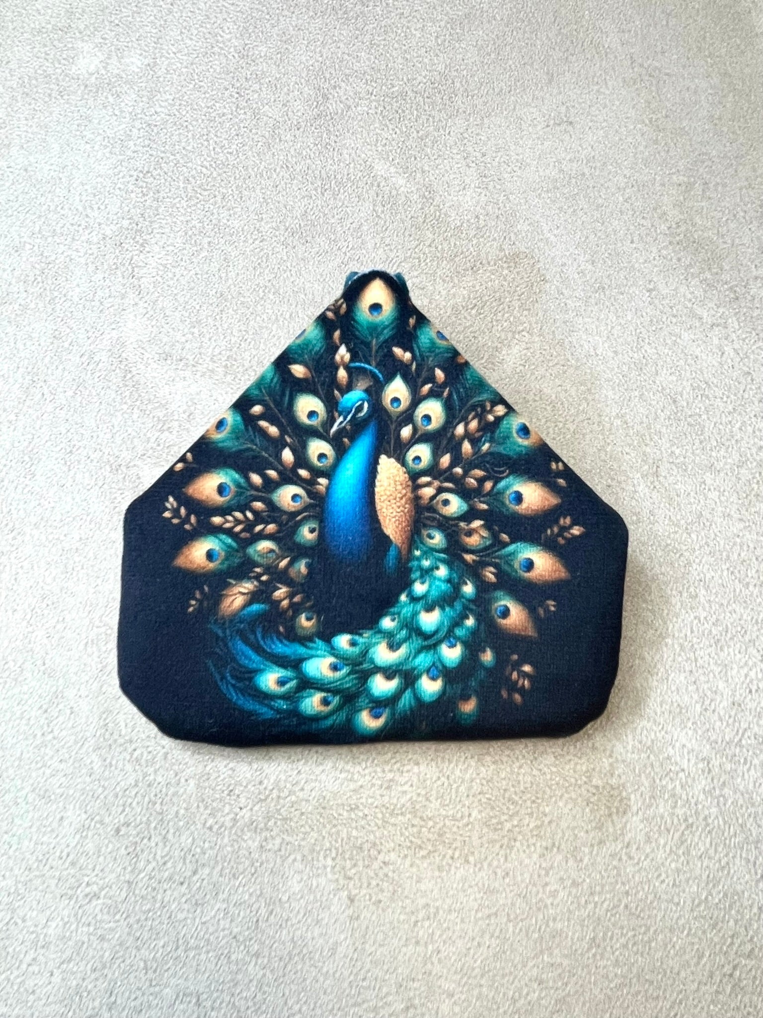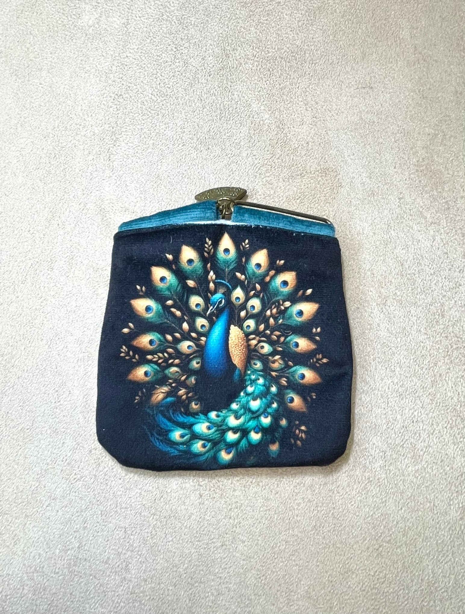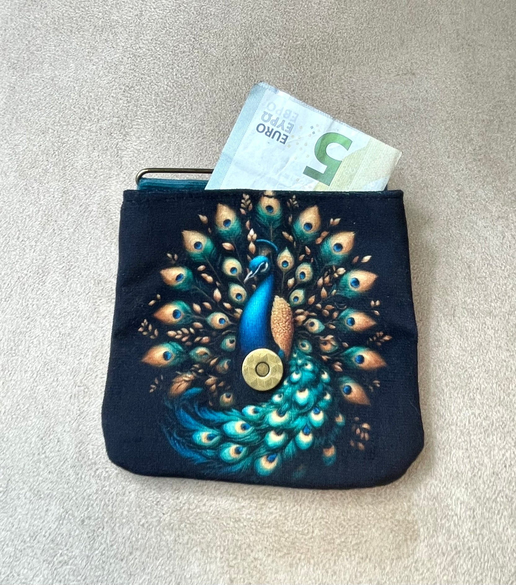 Porte-monnaie aimanté en velours - Joli paon lumineux