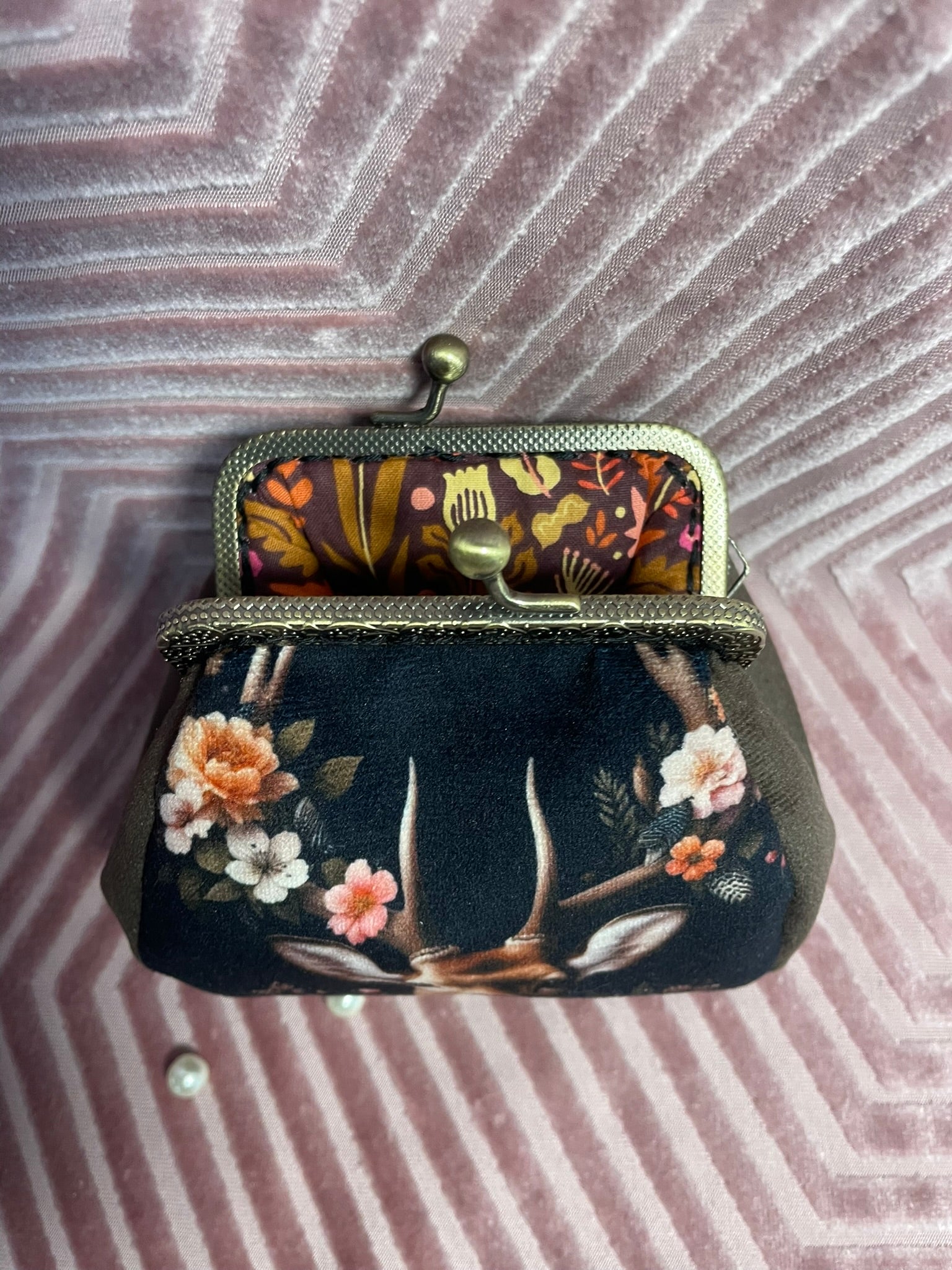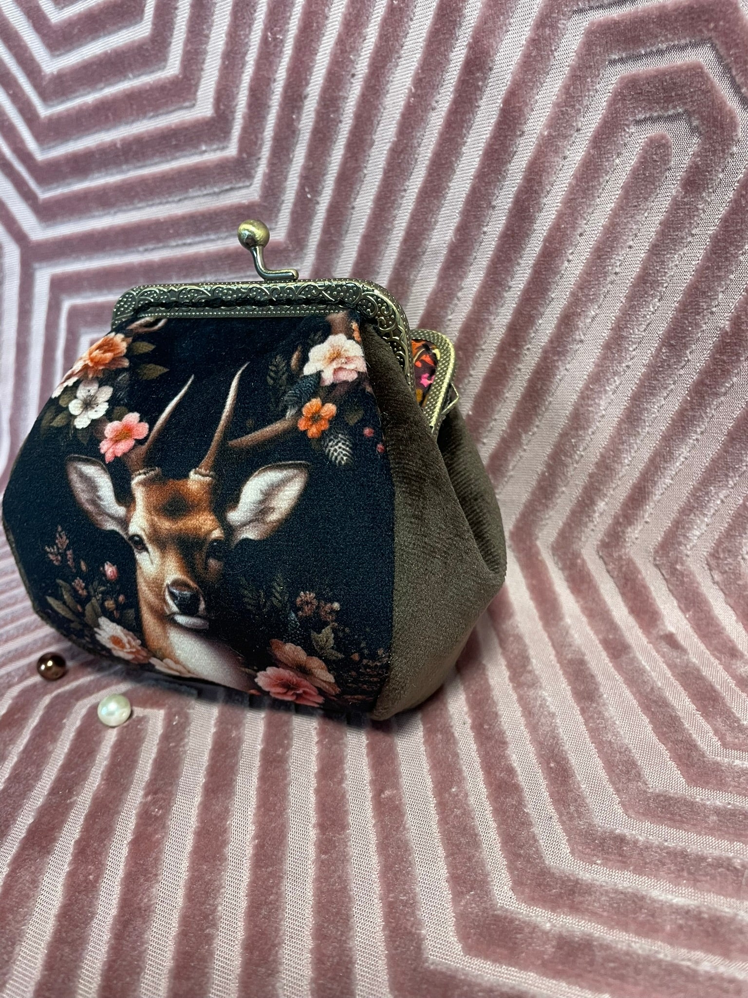 Laissez-vous emporter par la poésie de la nature avec ce porte-monnaie artisanal illustré d’un majestueux cerf entouré de fleurs délicates. Une création textile au style vintage et bohème, pensée pour celles et ceux qui apprécient les accessoires originaux, élégants et empreints de douceur sauvage.
