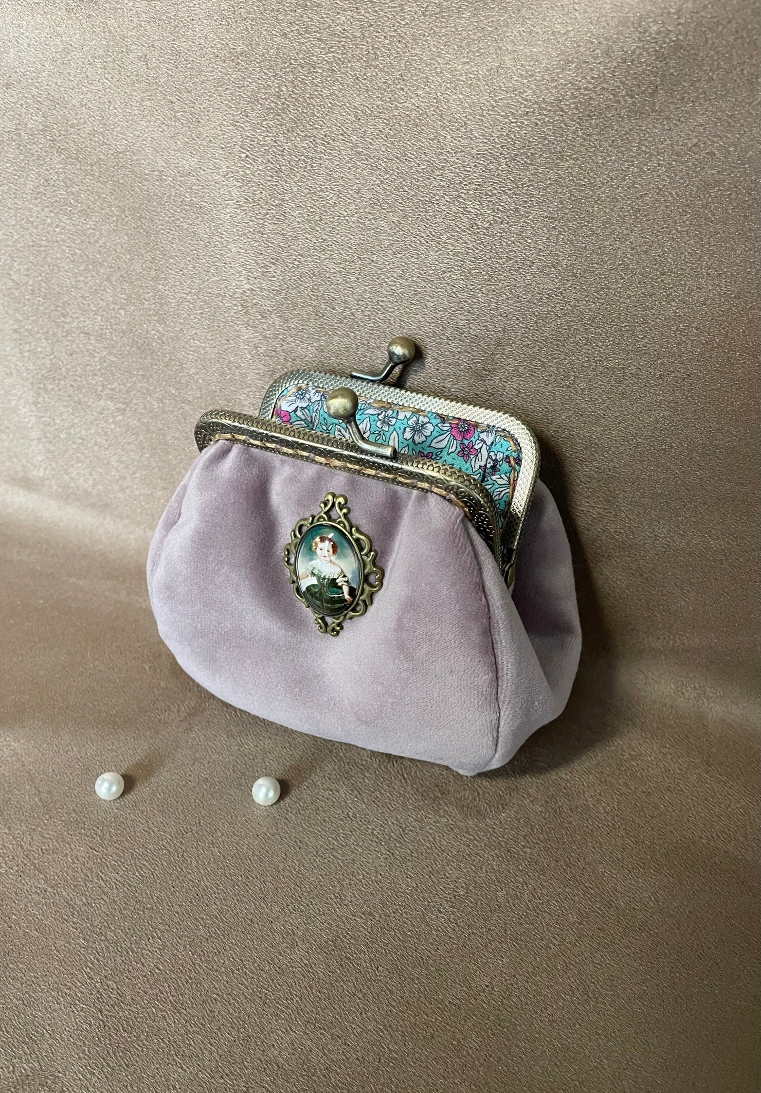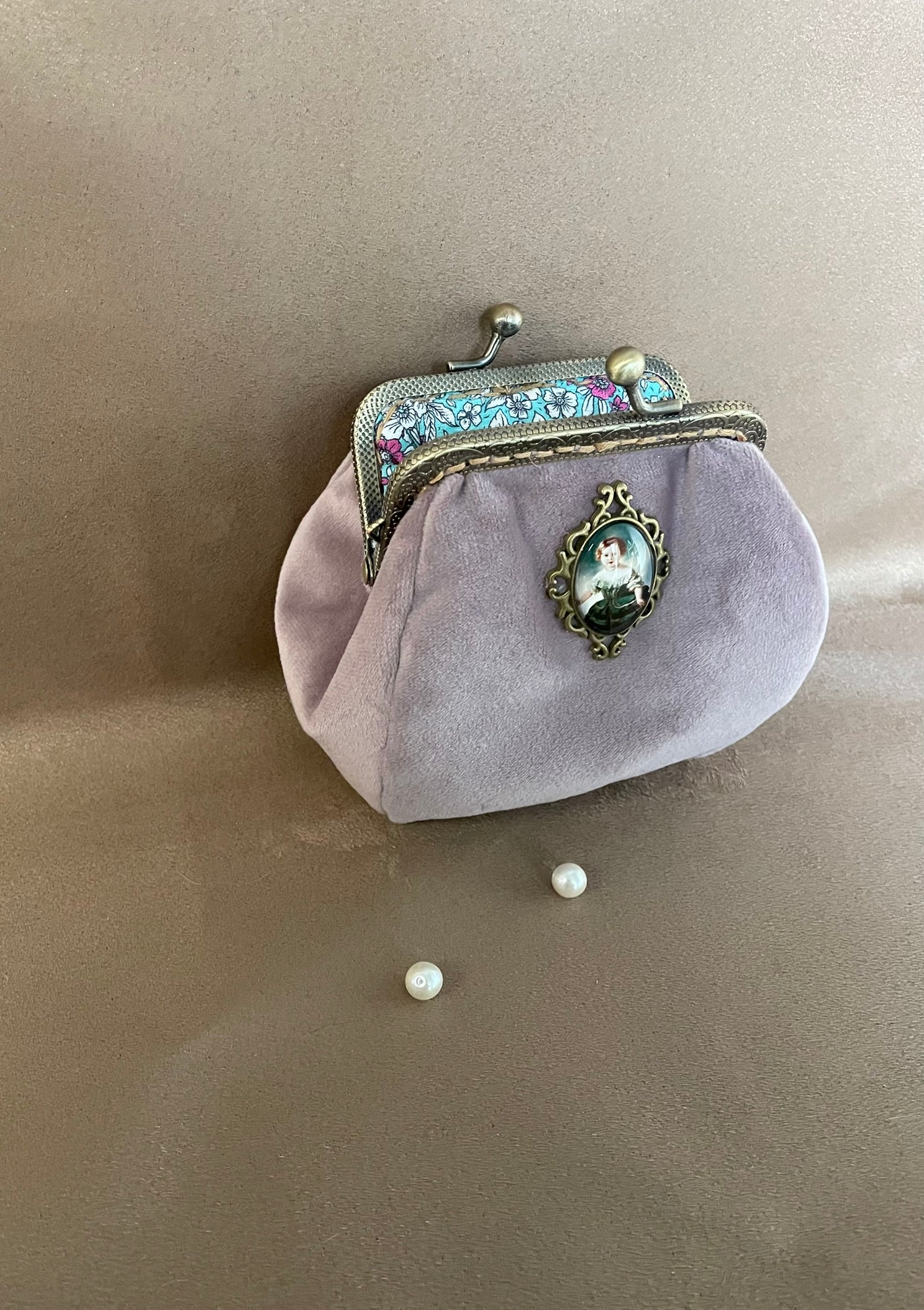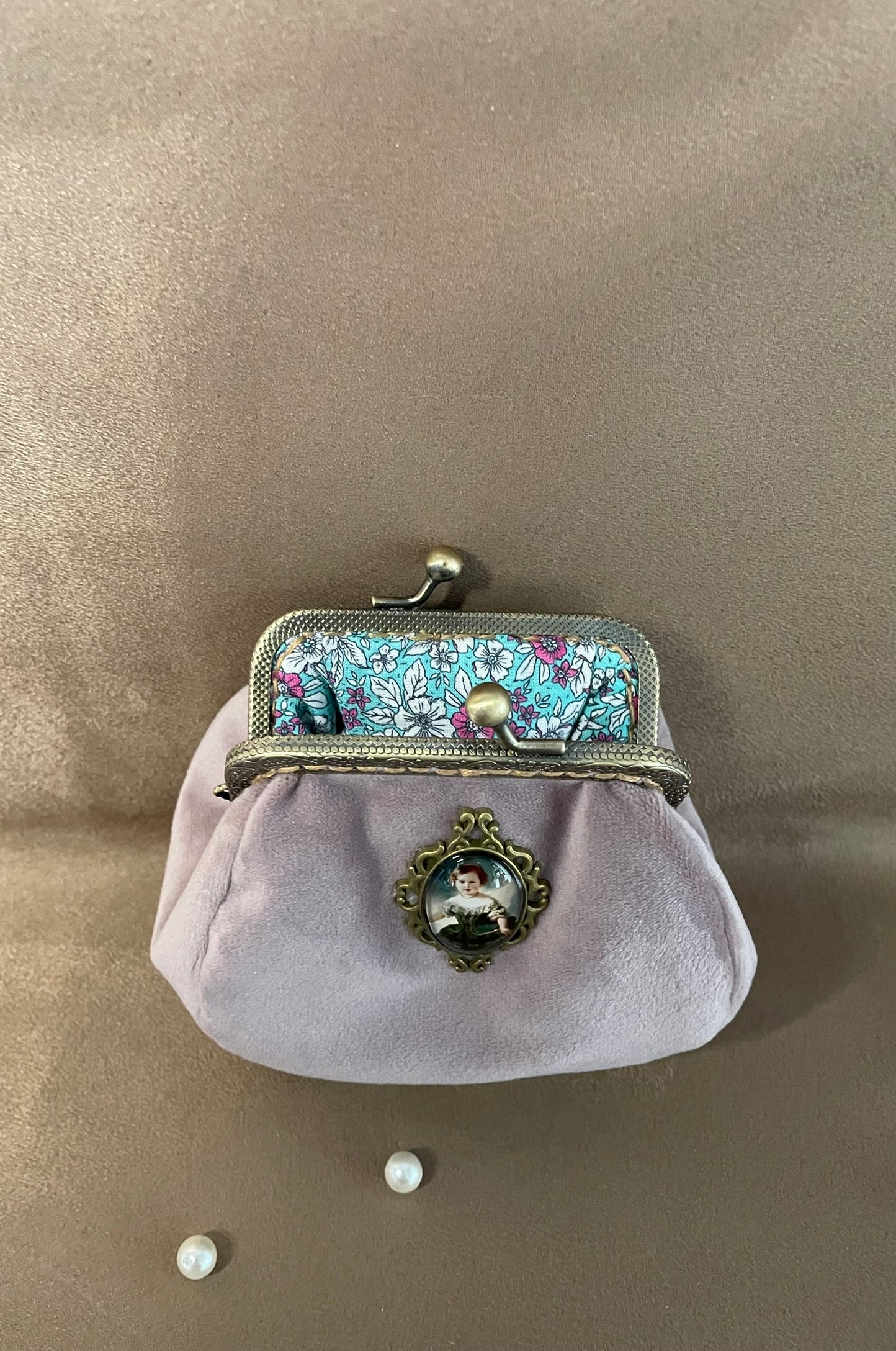 Porte-monnaie « Douceur d'Antan » – Médaillon Ancien & Velours Poudré