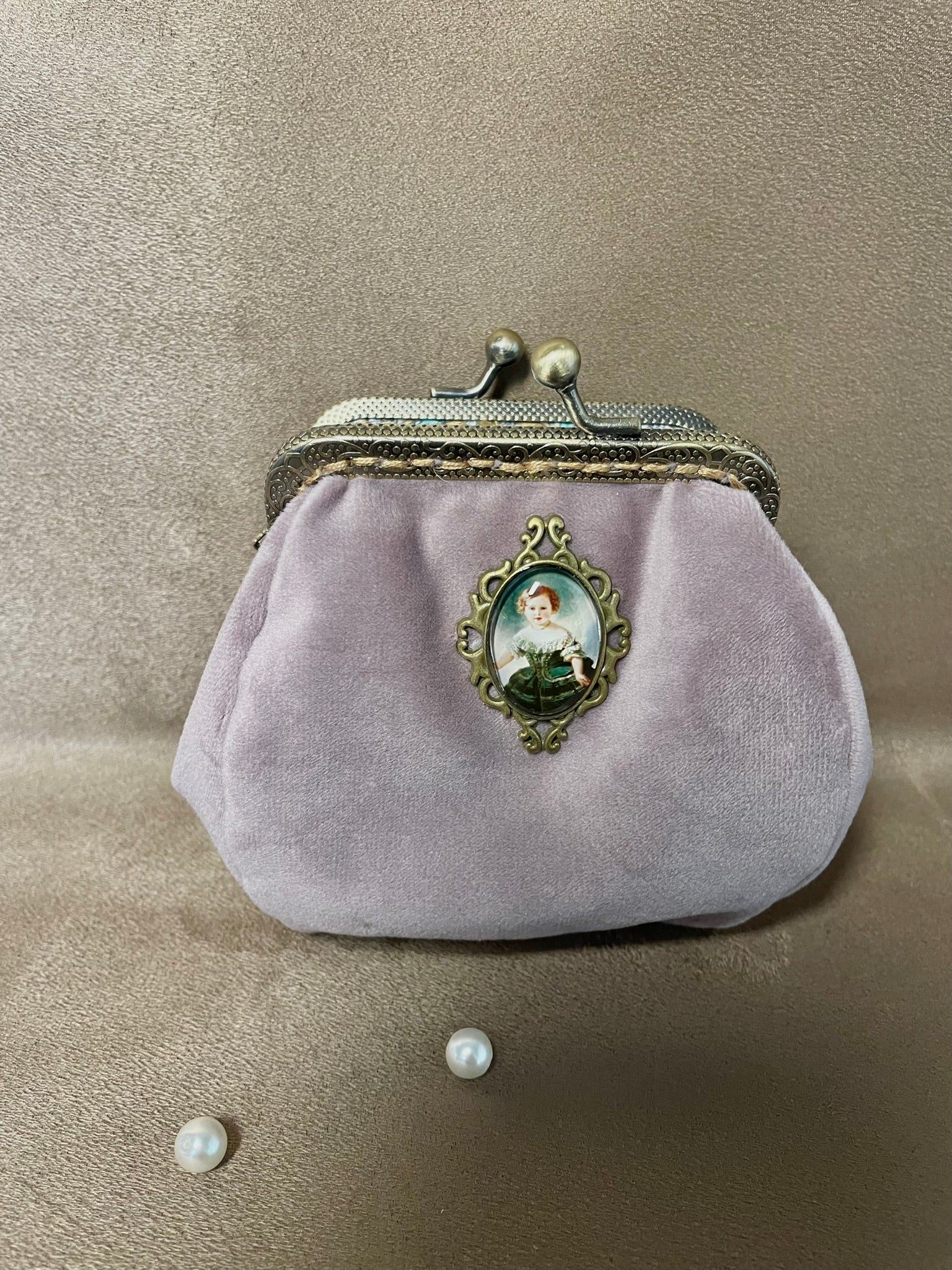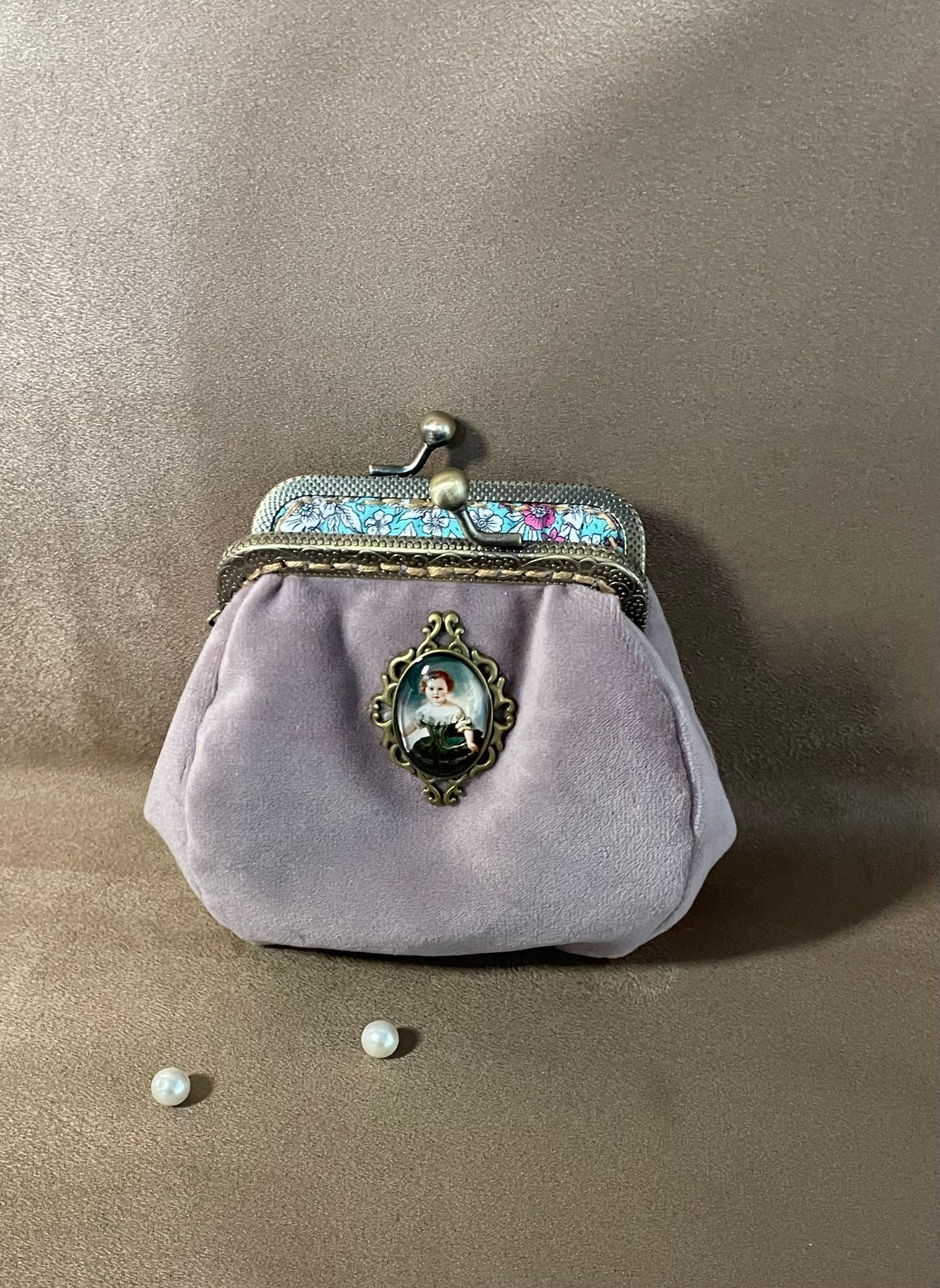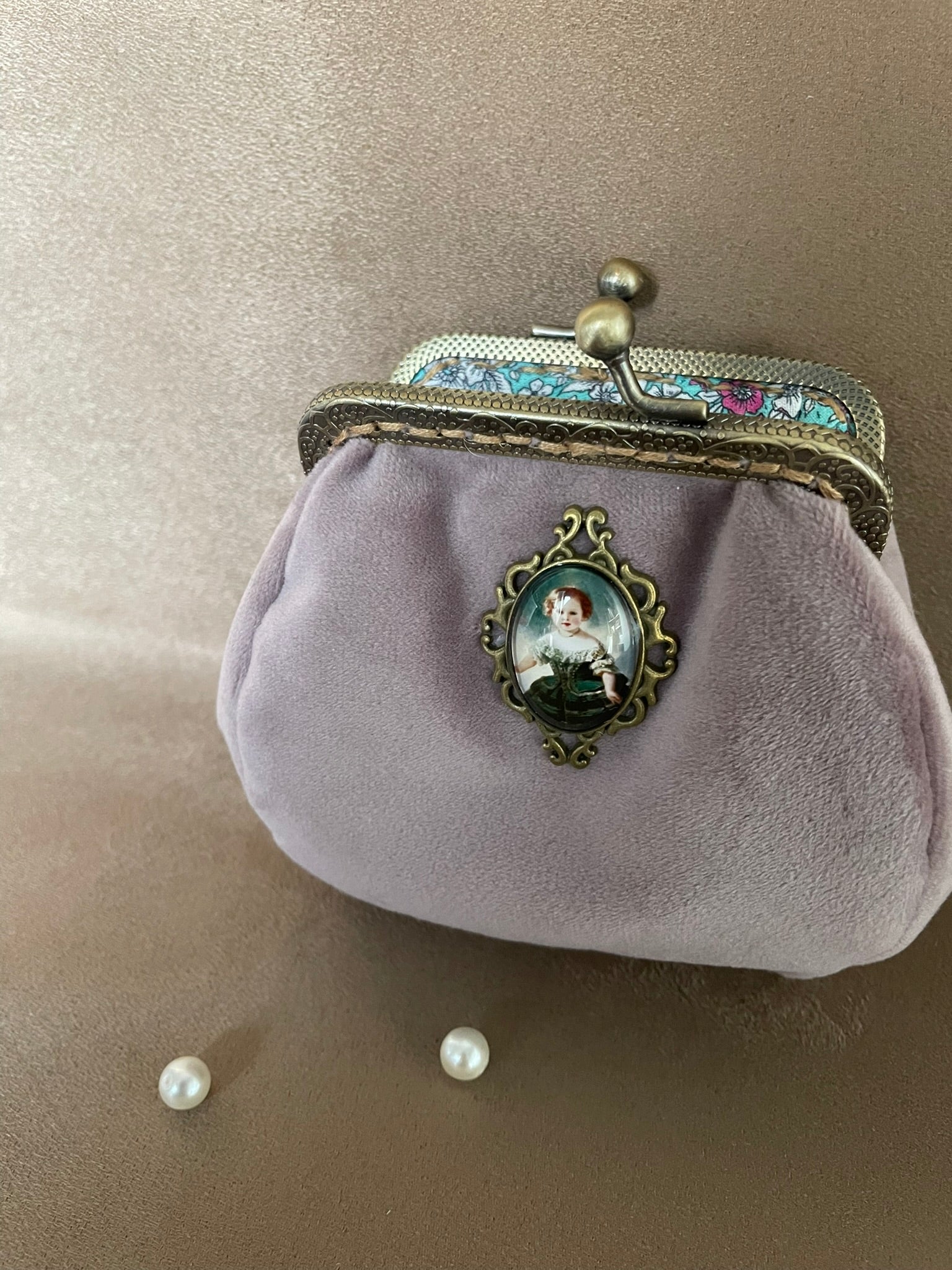 Porte-monnaie « Douceur d'Antan » – Médaillon Ancien & Velours Poudré