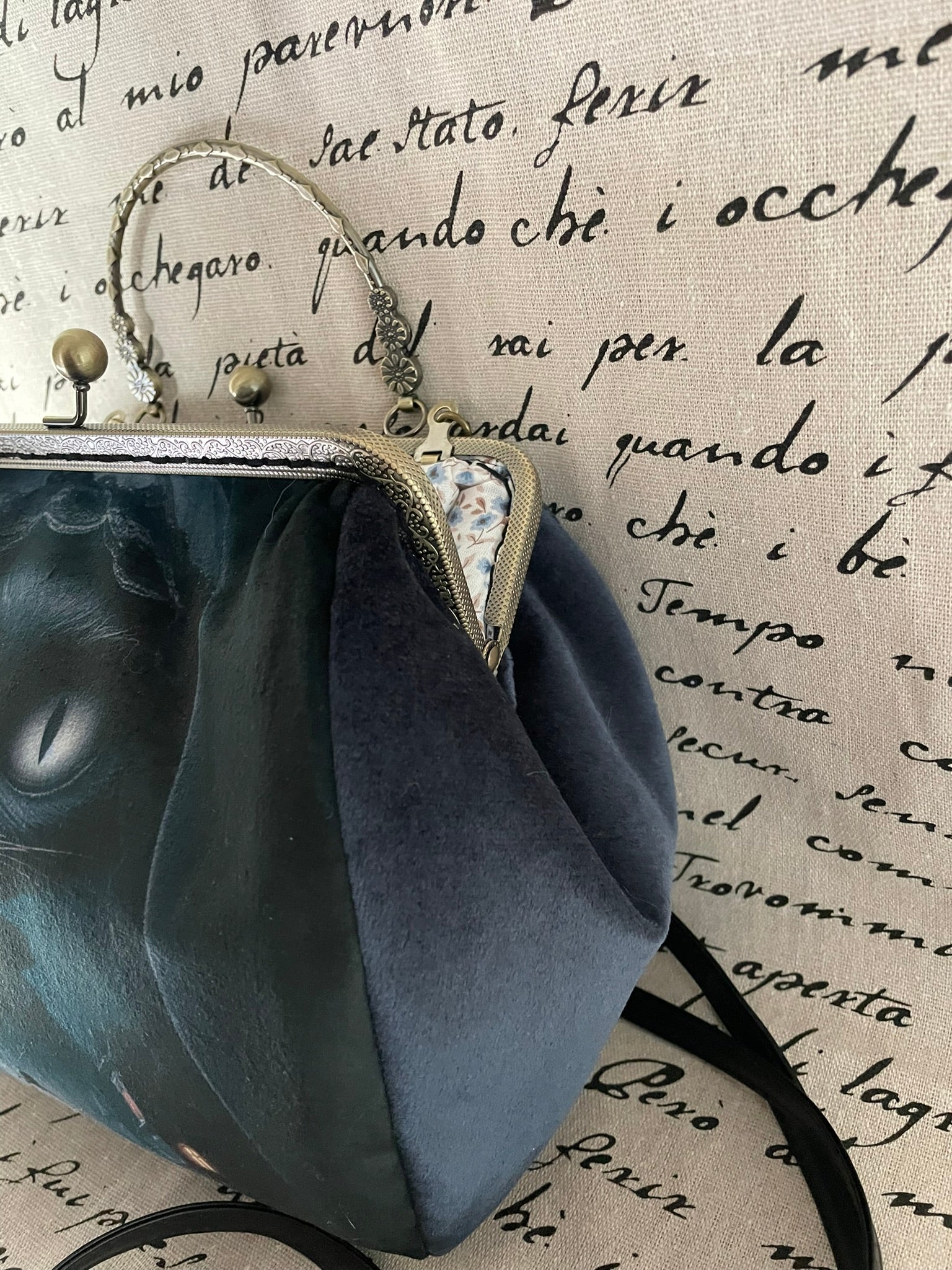 Découvrez le sac « Le Chat du Manoir de Minuit », une création mêlant fantaisie gothique, romantisme victorien et mystère félin.
