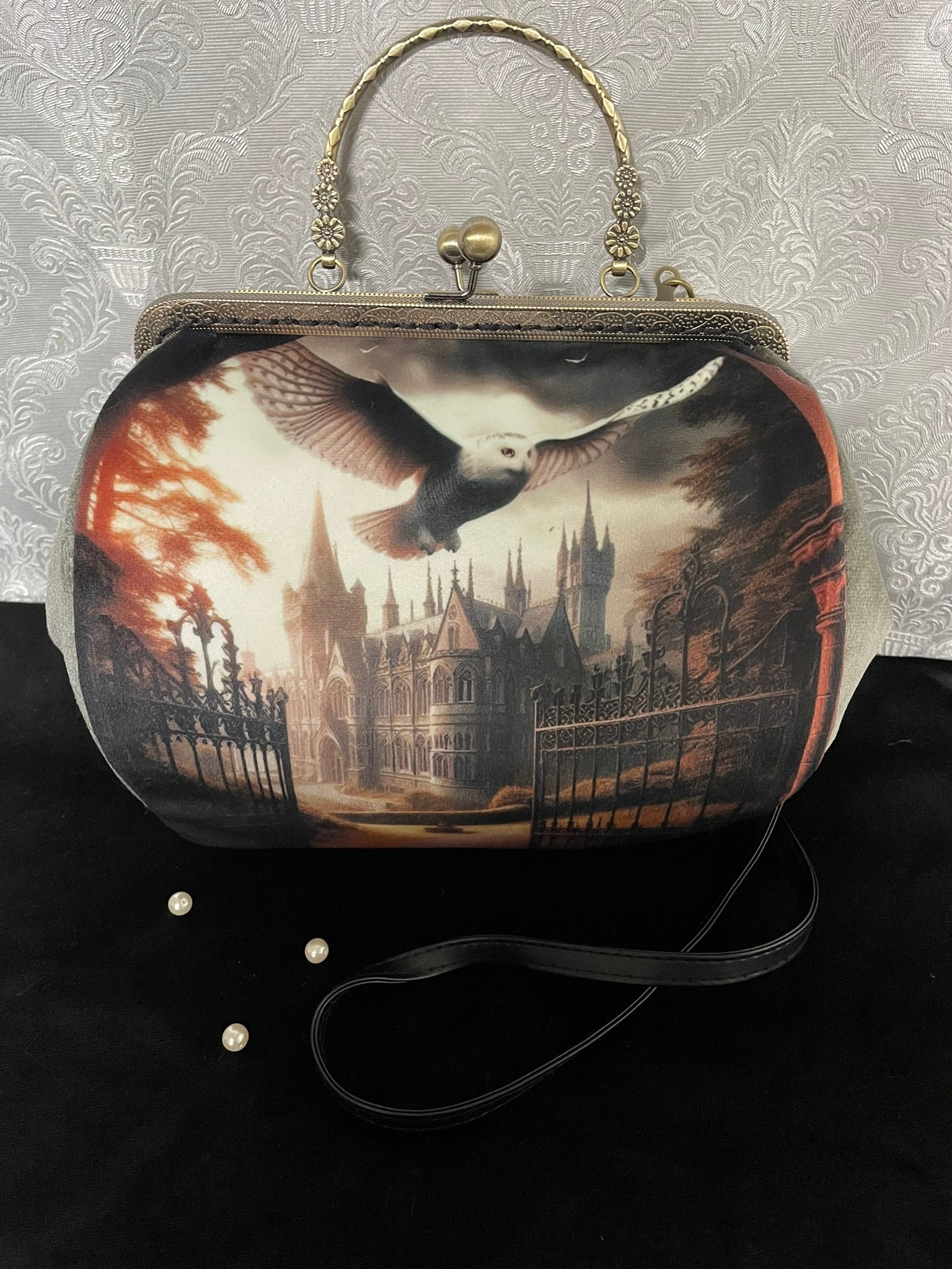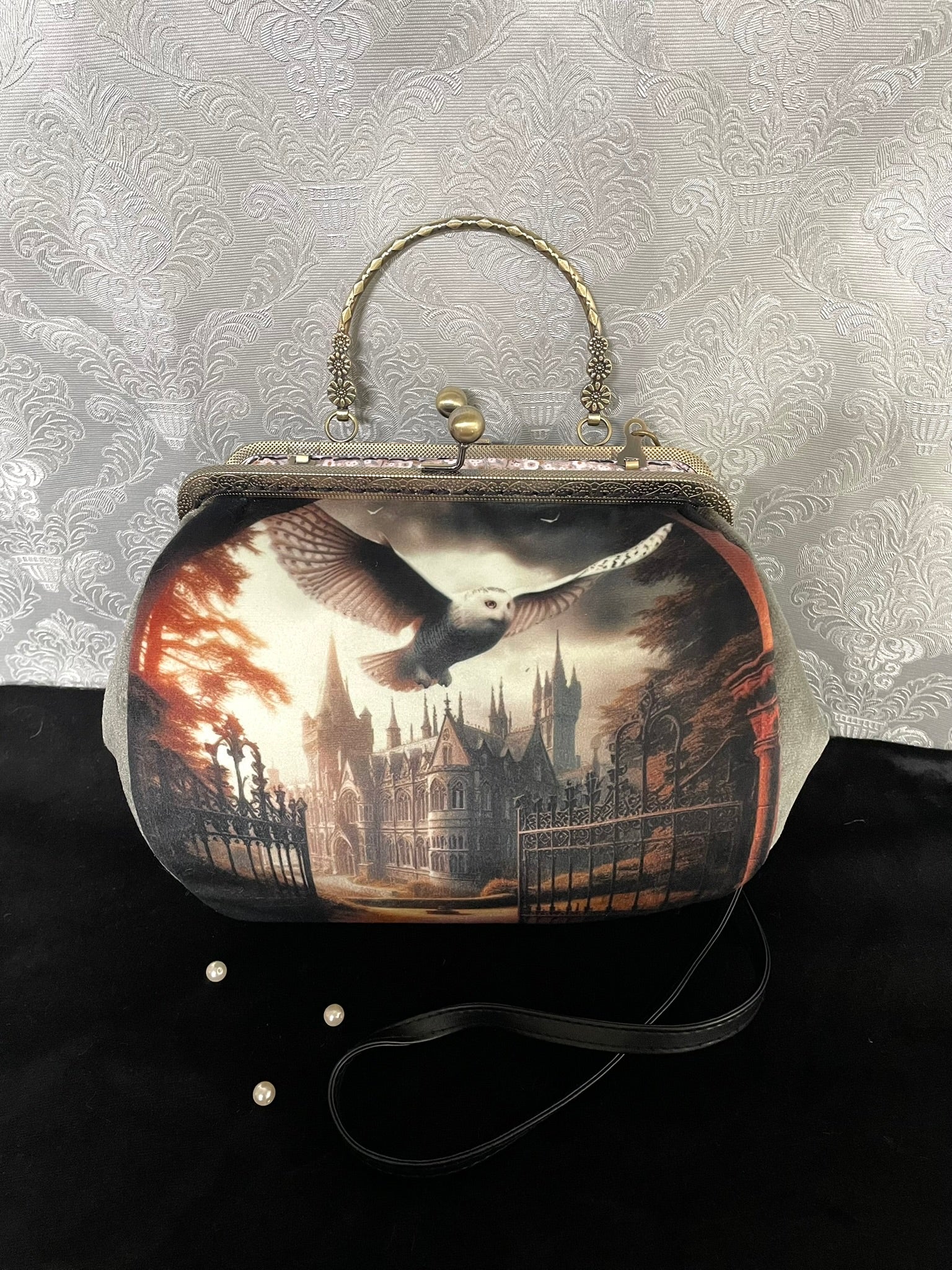 Ce modèle est une ode à la nuit, à la sagesse silencieuse et à l’élégance des mondes cachés. La chouette devient la gardienne d’un château oublié, une présence rassurante dans l’obscurité. C’est une pièce de caractère, parfaite pour les âmes rêveuses, les passionnées de légendes et les exploratrices du merveilleux. Un sac qui raconte une histoire, celle d’un vol nocturne au-dessus des mystères du passé.
