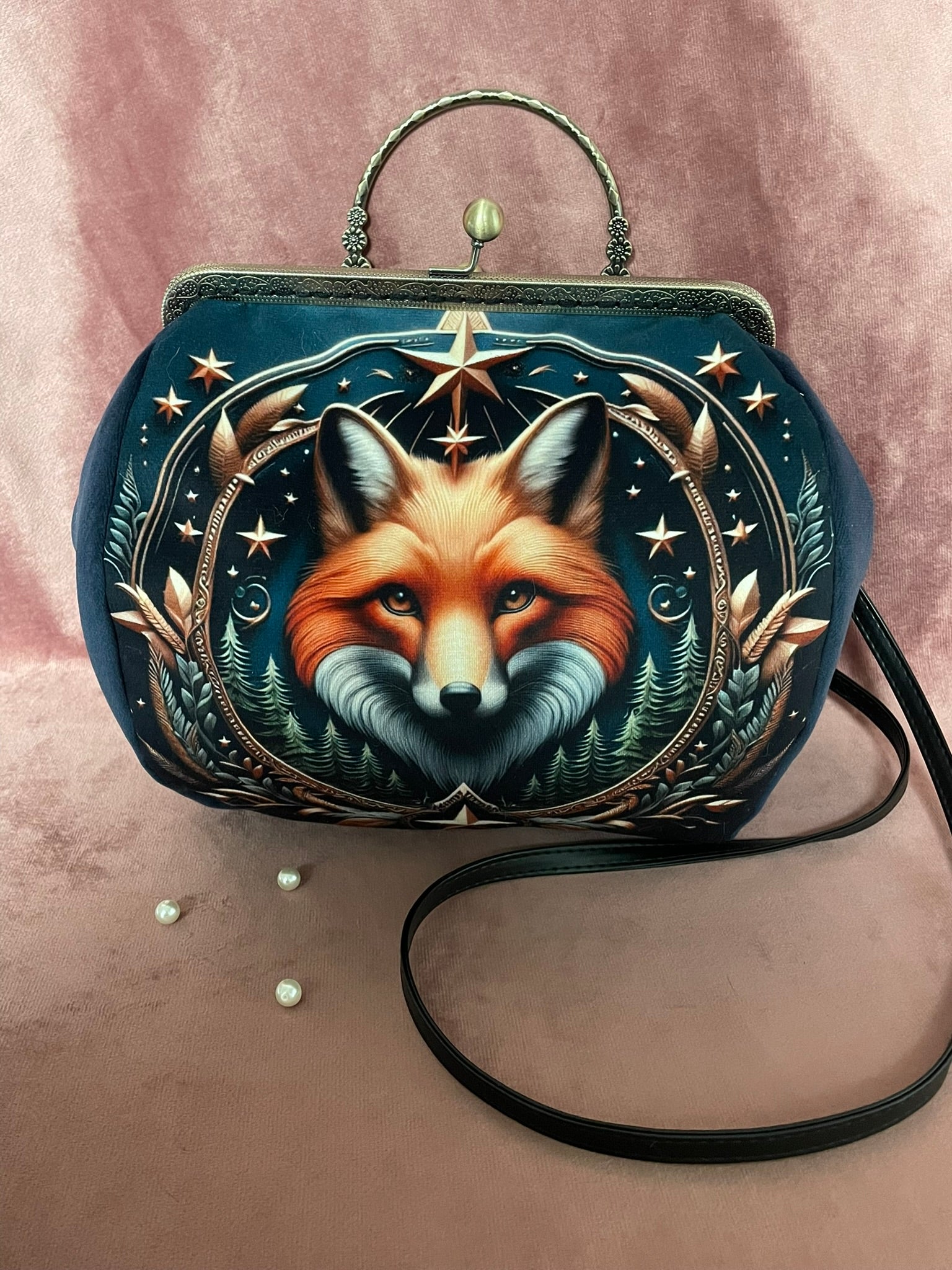 Sac Vintage Renard Mystique – Accessoire Féérique Femme en Velours Bleu Nuit